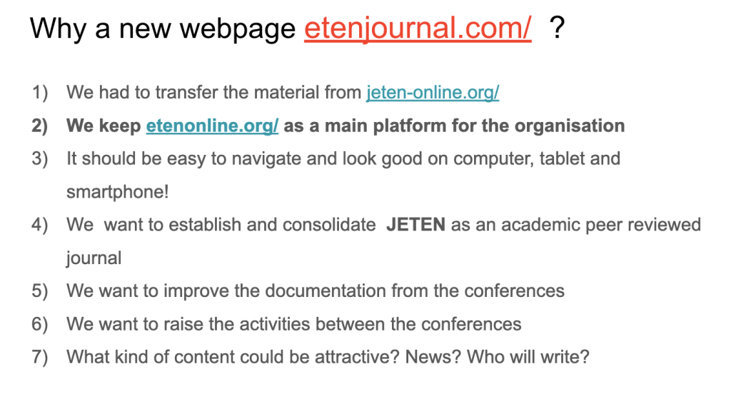 Mats: I believe it´s a necessary to draw a strict line between the academic peer reviewed material in JETEN and the other parts of etenjournal.com. The very essence of ETEN is to combine research and practice in many different ways.