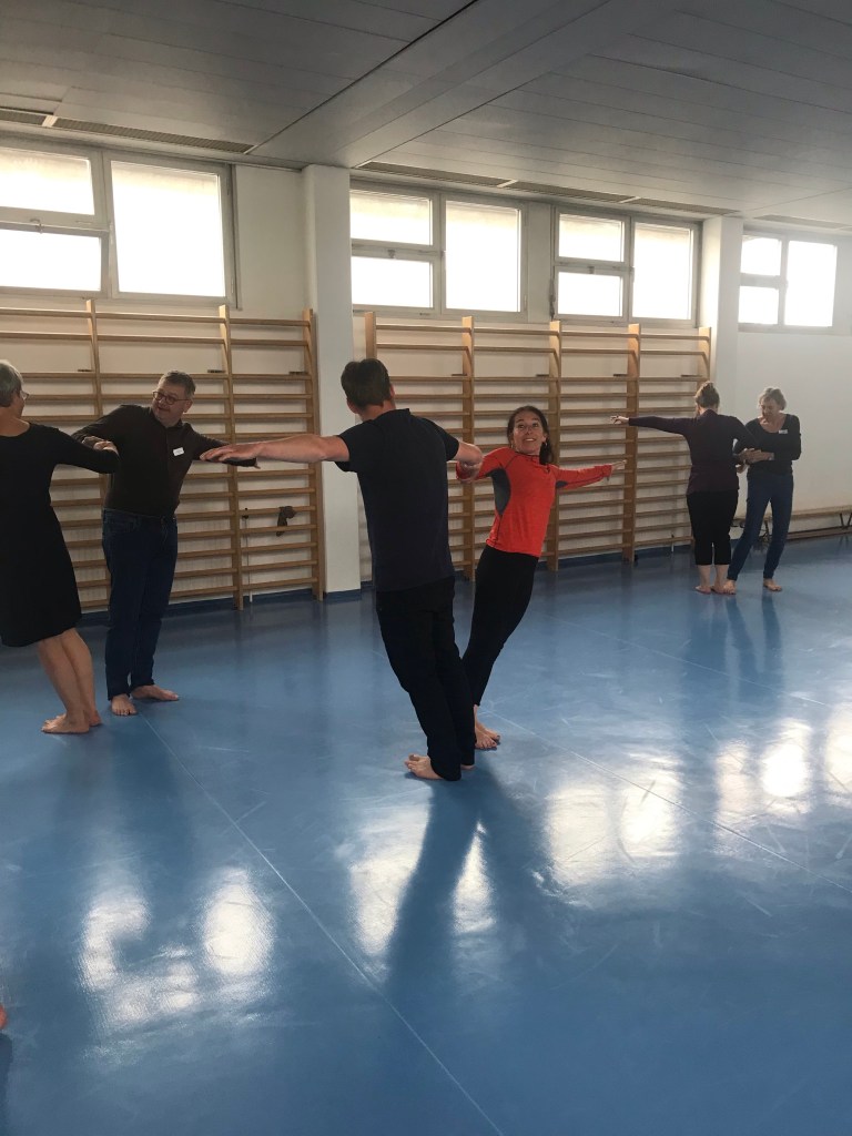 The workshop was composed by a set of moves based on “Counter balancing”, basic Acrobatics moves. As a participant in the work shop the participants joined in on their own terms to explore on “how does it feel”.