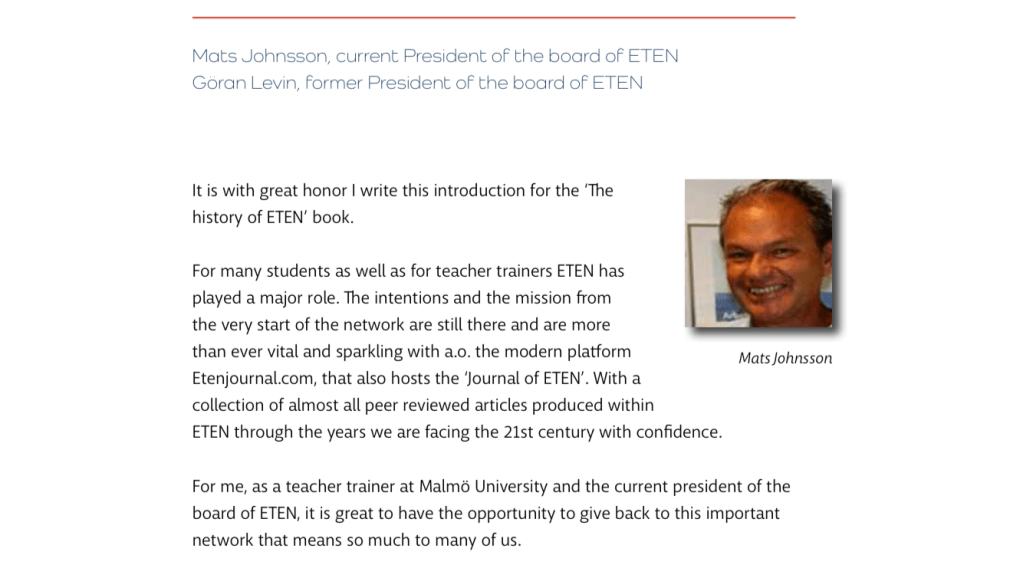 The history of ETEN #2 By Mats Johnsson on 20 May, 2022 • ( 0 ) The-history-of-eten.pdfDownload Read it all in the pdf p.10-12 Meet Göran Levin! Share this: Click to share on X (Opens in new window) X Click to share on Facebook (Opens in new window) Facebook Click to share on LinkedIn (Opens in new window) LinkedIn Click to share on Reddit (Opens in new window) Reddit Click to share on Pinterest (Opens in new window) Pinterest Like Loading...‹ The history of ETEN #1The history of ETEN #3 ›Categories: The history of ETEN
