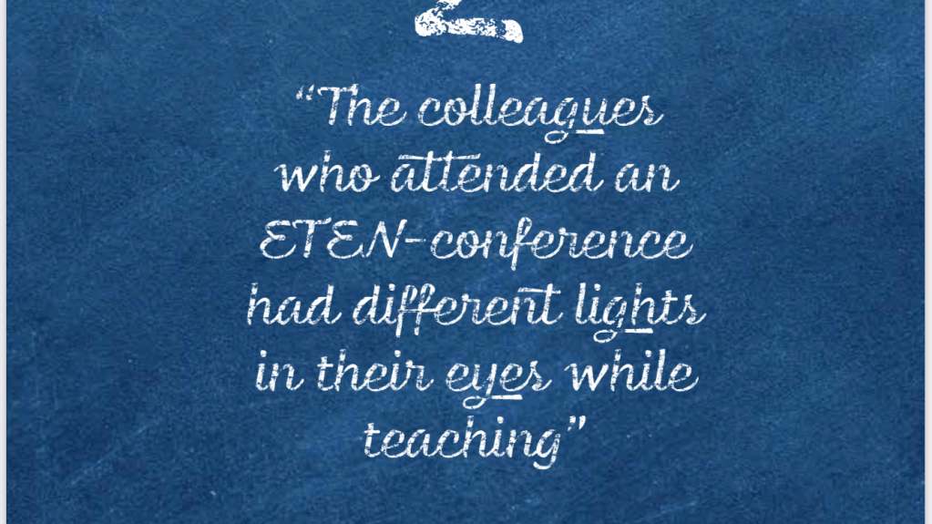 His first meeting with ETEN was in Copenhagen in 1994, at his own Højvangseminariet where he was the Dean. Associate Professor Astrid Sødring Jensen had been contacted by her colleague from Viborgseminariet in Denmark, Inger Bentsen, who had asked if she thought that the management of Højvangseminariet would be interested in becoming part of this European teacher and pedagogue education network. Carl-Jørgen and his colleague, Research and Development manager Peter Mikkelsen, were certainly interested. The result was that ETEN – as a friendly gesture – held a meeting for its Exchange Co-ordinators (ECO’s) at Højvangseminariet in Copenhagen, which Carl-Jørgen and Peter appropriately could attend.