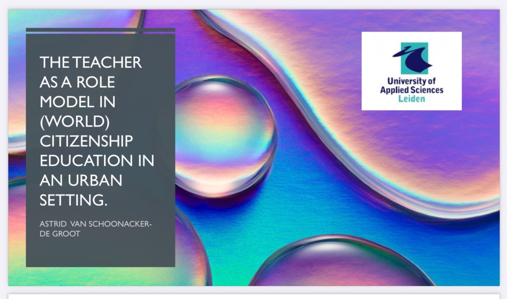 THE TEACHER AS A ROLE MODEL IN (WORLD) CITIZENSHIP EDUCATION IN AN URBAN SETTING By Editor on 27 April, 2023 • ( 0 ) A presentation by Astrid von Schoonacker-de Groot. Mail The teacher as role model in (world)citizenship education in an urban setting_PPAstrid.pdfDownload Link to Urban education TIG Share this: Click to share on X (Opens in new window) X Click to share on Facebook (Opens in new window) Facebook Click to share on LinkedIn (Opens in new window) LinkedIn Click to share on Reddit (Opens in new window) Reddit Click to share on Pinterest (Opens in new window) Pinterest Like Loading...‹ An urban tour with the Urban education TIG in NürnbergThe Reflective Practice and Teaching for Thinking TIG in Nürnberg ›Categories: 2023 Nürnberg, Conferences, Urban Education