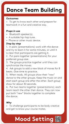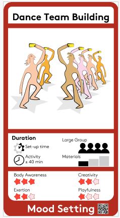 Do you point out that you can use dance to create a dynamic within a group? When you don’t know each other yet, and as a facilitator you provide a safe learning environment, you find that your children/students bring each other into the story. provide simple movements that everyone can participate in. Mats showed us a few basic steps, creating a short dance structure. Afterwards, we were immediately divided into groups and allowed to add or omit movements. so each group made its own thing. Nice to see was how within group you consider each other. By watching and talking, you sense who feels comfortable with which movement.