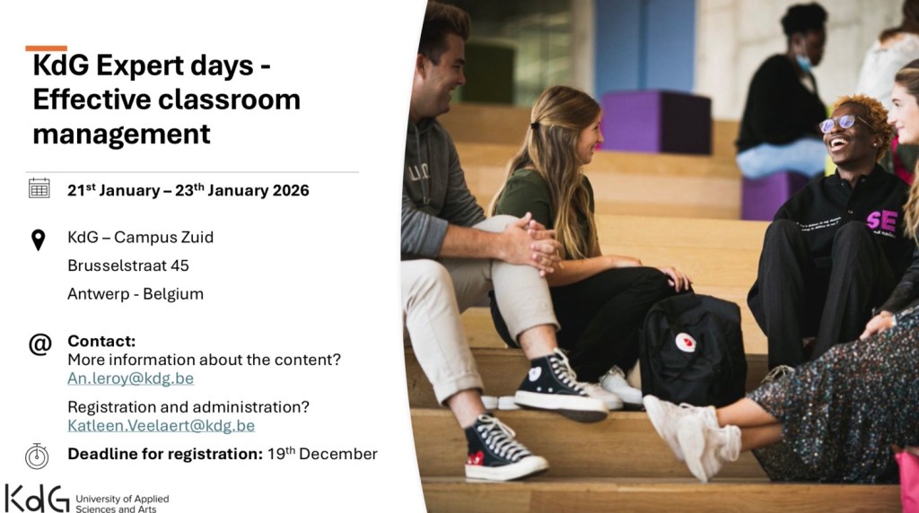 From 21 to 23 January 2026, you are warmly invited to the teacher training department of Karel de Grote University of Applied Sciences and Arts in Antwerp for the KdG Expert Days focusing on