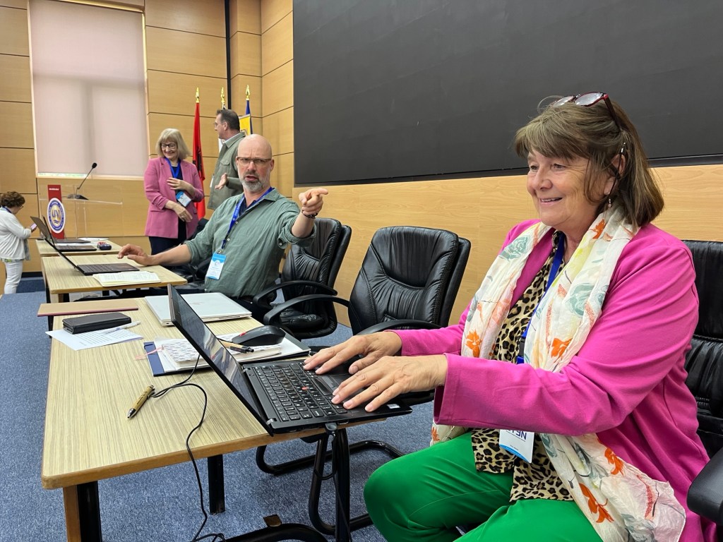 This is the house you are looking forThis is where the General Assembly takes place. A link for absent friends will be provided here.Anna and Eva Cipi are eager to welcome you.The team – do not hesitate to ask them about everything!The board – always well prepared!The Secretary just can’t wait to take notes!…and we are finally rolling!