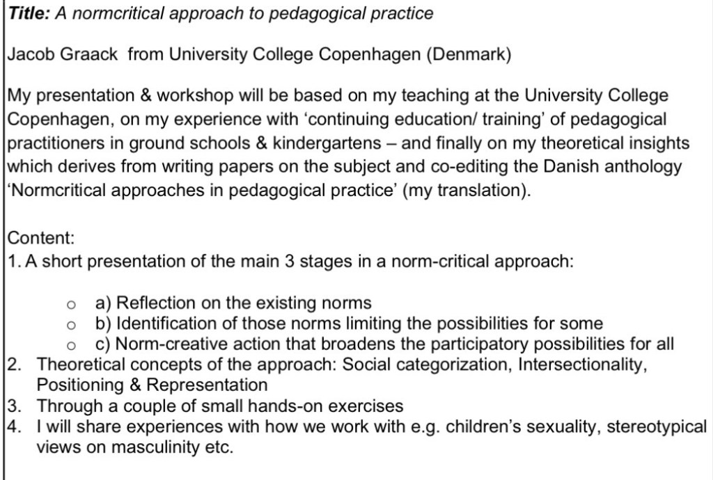 The TIG Urban Education By Editor on 23 April, 2026 • ( 0 ) Link to program. A normcritical approach to pedagogical practice Jacob Graack – from Copenhagen. Share this: Share on X (Opens in new window) X Share on Facebook (Opens in new window) Facebook Share on LinkedIn (Opens in new window) LinkedIn Share on Reddit (Opens in new window) Reddit Share on Pinterest (Opens in new window) Pinterest Like Loading...‹ The TIG InternationalisationThe TIG Creative Storytelling on the Beach ›Categories: 2026 Vlora, Urban Education