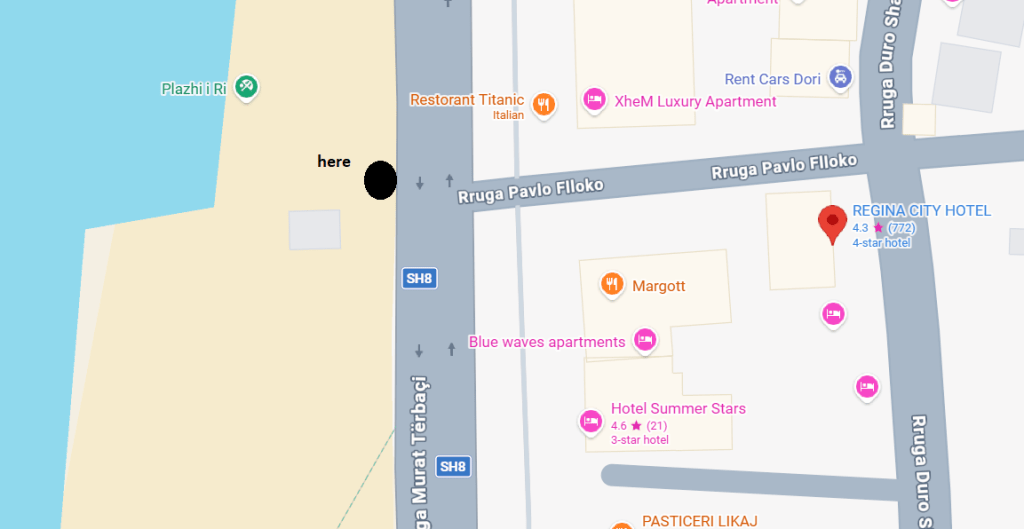 Not precisely at Regina hotel, black point – arrival at this point 19. 15- 19.30 depending of the traffic